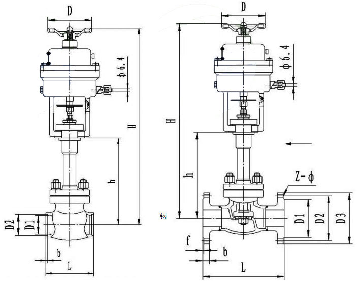 安装时应注意介质的流动方向,由阀顶上方向下流动;